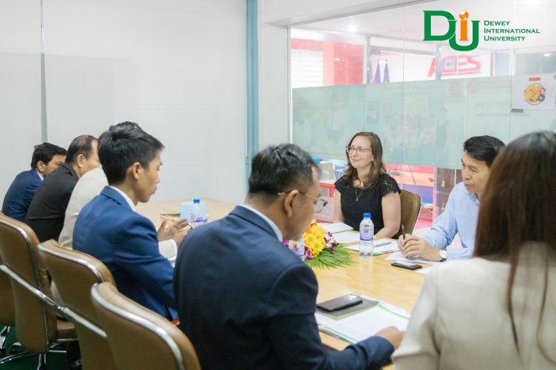 On the 30th of August 2024 the DI Top management team conducted a meeting with the US Embassy, Public Diplomacy section. Ms. Sara Feuerstein, the Cultural Affairs Officer and Mr. Po Eng, the Public Engagement specialist represented the US Embassy for a powerful engagement session between Dewey International Education and Training Co., Ltd (DIET) and the US Embassy. The topics covered included; collaboration and partnerships, upcoming projects, making an impact in Cambodia, facilitating cultural and learning exchanges between Cambodia and the US, scholarship opportunities, community activities, education in Cambodia and providing top quality education to the people of Cambodia.